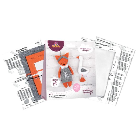 В набор входят все необходимые материалы для изготовления игрушки: фетр, синтепон, хлопчатобумажные нитки мулине Gamma, швейная игла, выкройка, подробная инструкция с картинками.