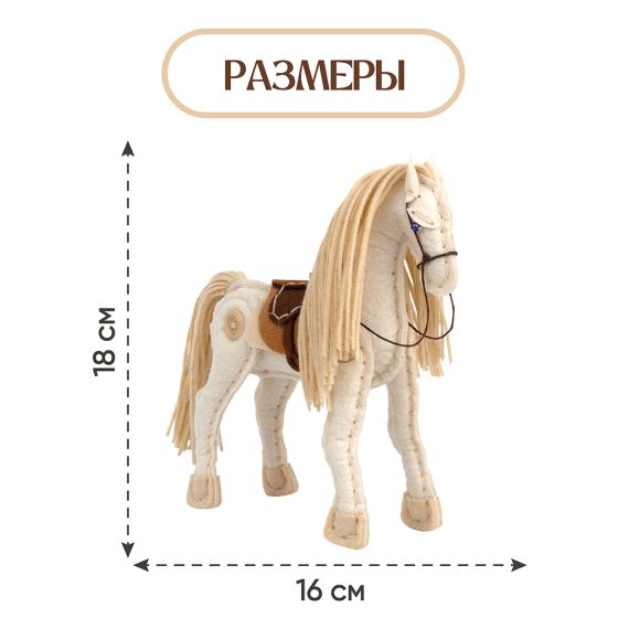 Прекрасный набор для шитья игрушки из фетра, который поможет создать очаровательную лошадку с роскошной гривой и выразительными глазами-бусинами.