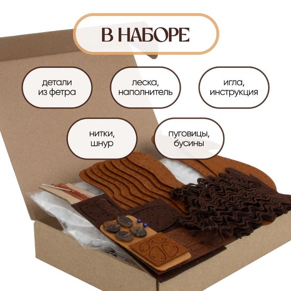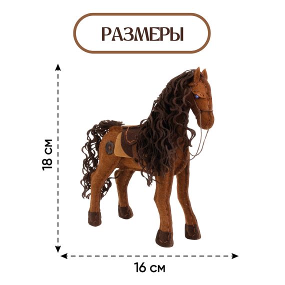 Прекрасный набор для шитья игрушки из фетра, который поможет создать очаровательную лошадку с роскошной кудрявой гривой и выразительными глазами-бусинами.