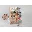 В набор входит: картонная основа с напечатанным изображением, акриловые краски в пронумерованных баночках, две кисти разного размера, инструкция с контрольным листом и эталоном готовой картины.