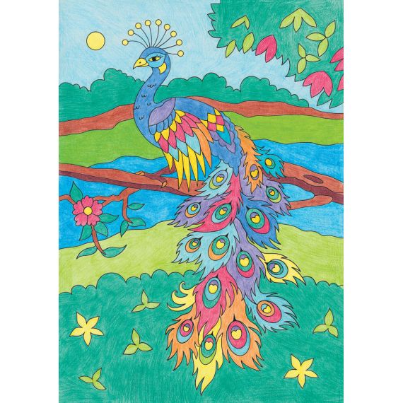 Простые сюжеты и яркие цветные карандаши идеально подходят для детского творчества.