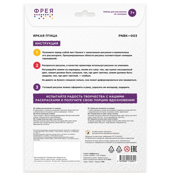 Фрея Картина по номерам PNBK-003 29.5х20.5см Яркая птица