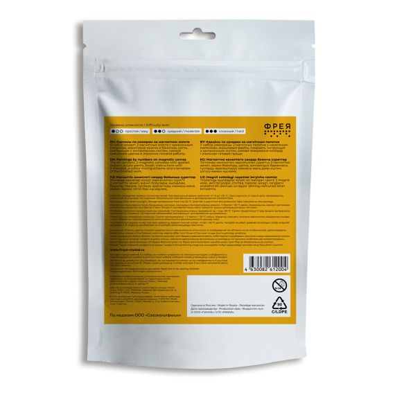 Состав набора: 2 холста на магнитной основе с нанесенным изображением, акриловые краски в пронумерованных баночках, кисть, инструкция с контрольным листом, схемой смешения цветов и эталоном готовой работы.