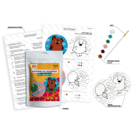Фрея Набор для раскрашивания по номерам на магните CMF-PNBM-001 9х9см Приключения Винни-Пуха