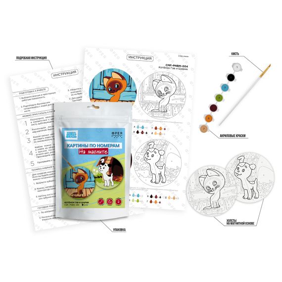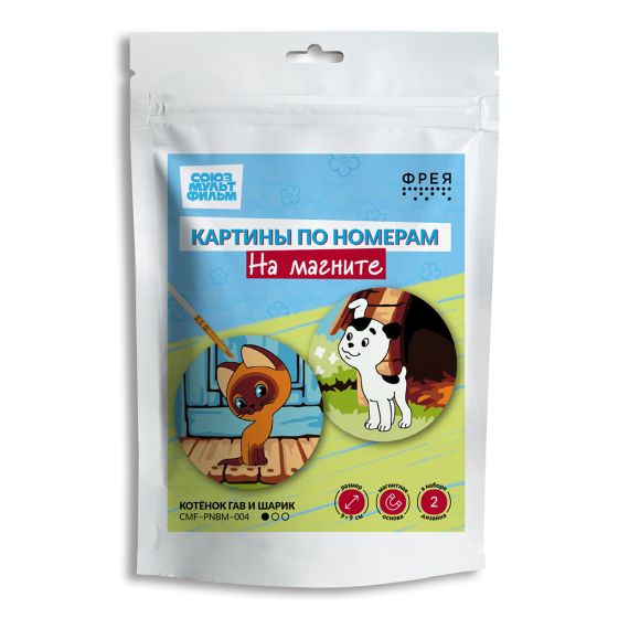 Фрея Набор для раскрашивания по номерам на магните CMF-PNBM-004 9х9см Котенок Гав и Шарик