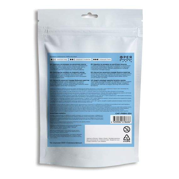 Состав набора: 2 холста на магнитной основе с нанесенным изображением, акриловые краски в пронумерованных баночках, кисть, инструкция с контрольным листом, схемой смешения цветов и эталоном готовой работы.