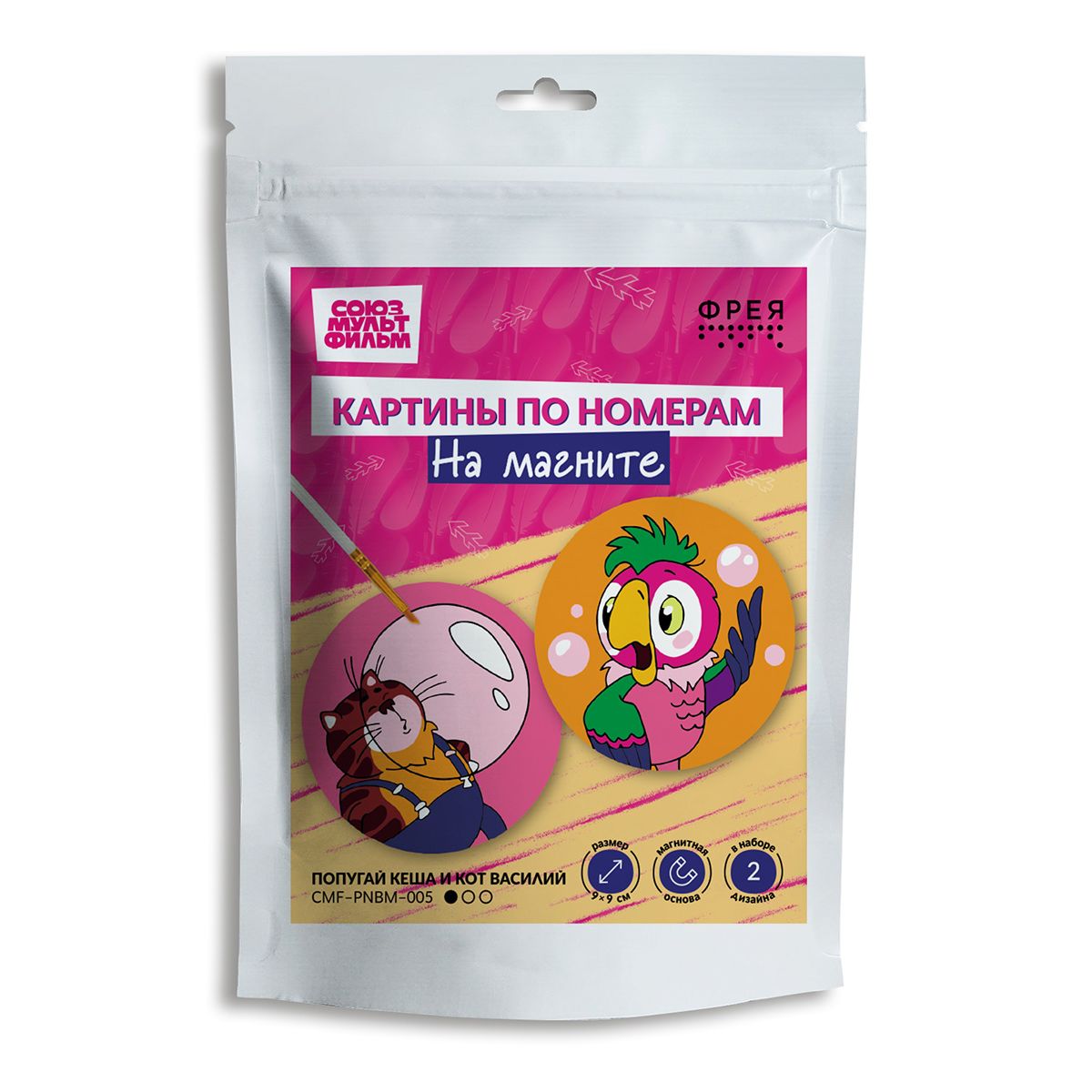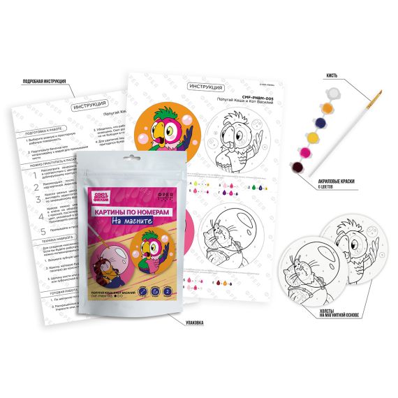 Фрея Набор для раскрашивания по номерам на магните CMF-PNBM-005 9х9см Попугай Кеша и Кот Василий