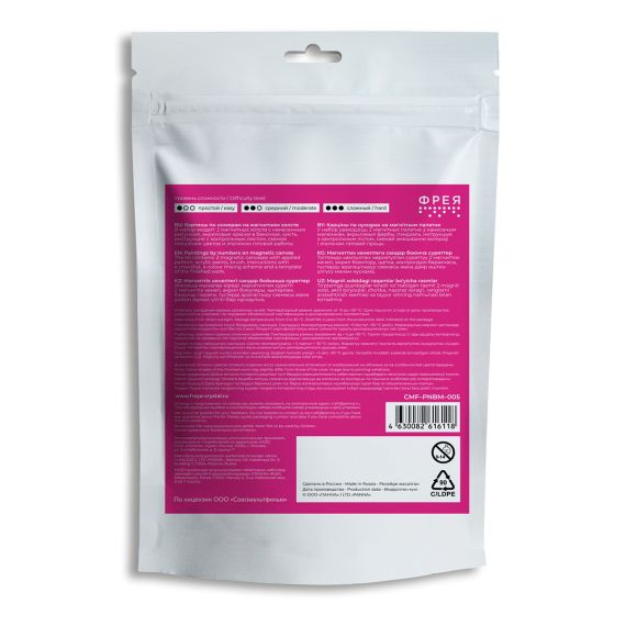 Состав набора: 2 холста на магнитной основе с нанесенным изображением, акриловые краски в пронумерованных баночках, кисть, инструкция с контрольным листом, схемой смешения цветов и эталоном готовой работы.