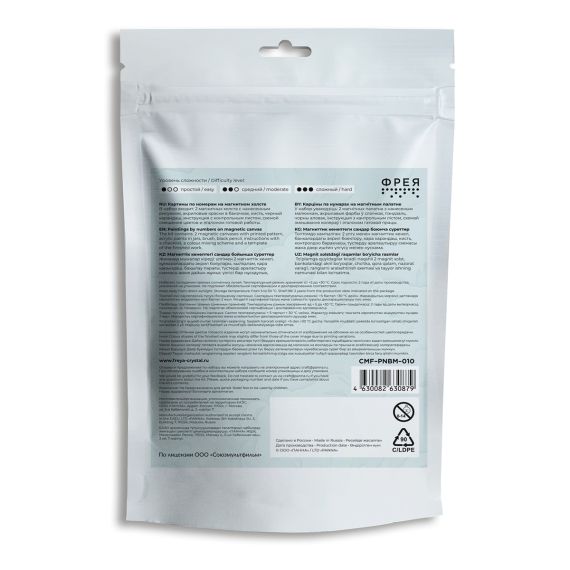 Состав набора: 2 холста на магнитной основе с нанесенным изображением, акриловые краски в пронумерованных баночках, кисть, инструкция с контрольным листом, схемой смешения цветов и эталоном готовой работы.