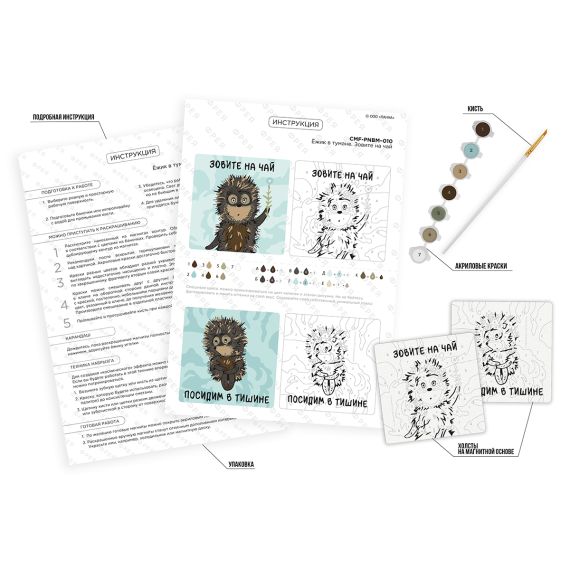 Фрея Набор для раскрашивания по номерам на магните CMF-PNBM-010 9х9 см Ёжик в тумане Зовите на чай