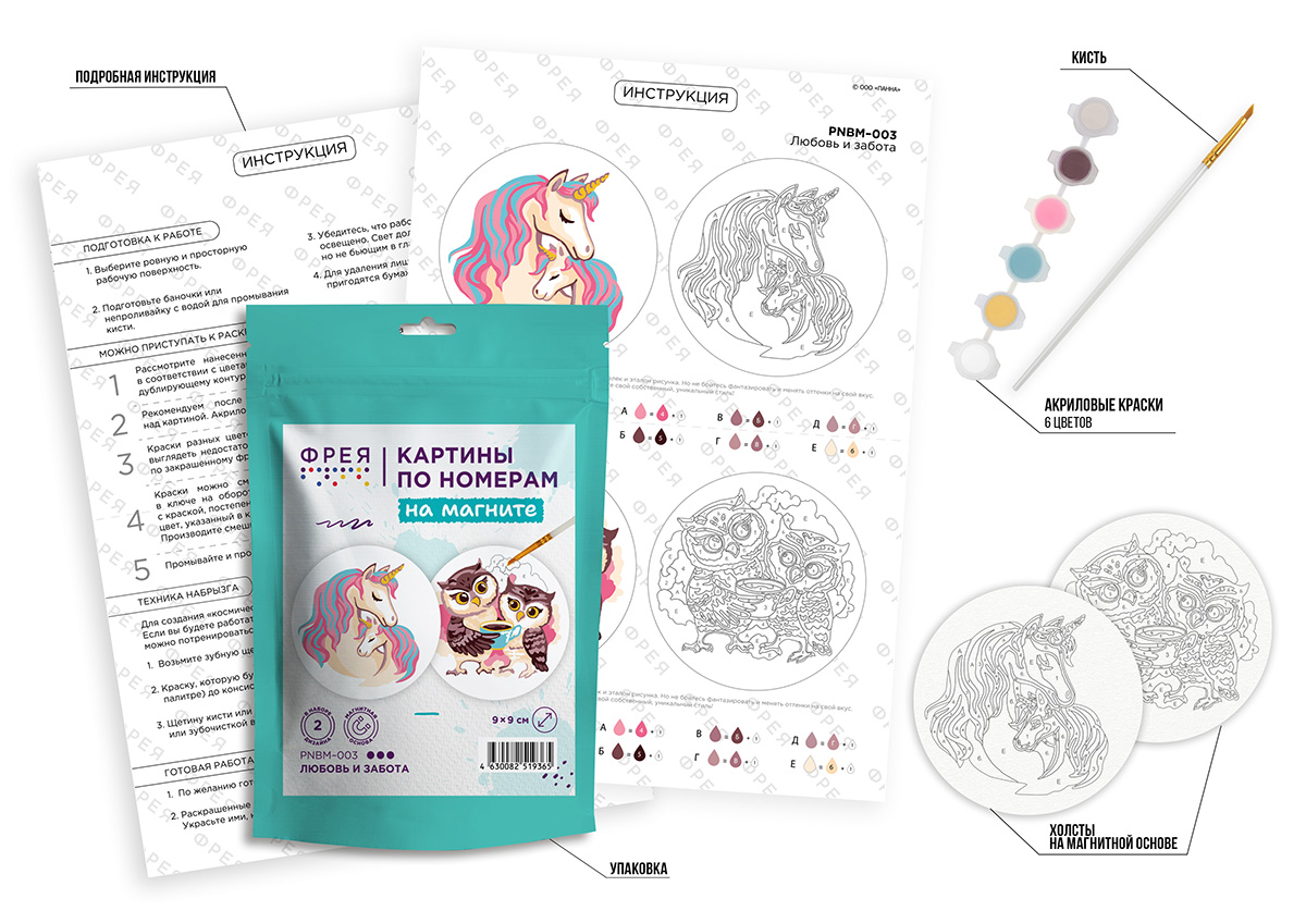 Фрея Набор для раскрашивания по номерам на магните PNBM-003 9х9см Любовь и забота