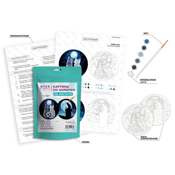 Фрея Набор для раскрашивания по номерам на магните PNBM-005 9х9см Лунные котики