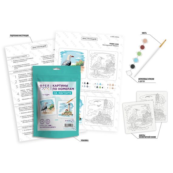 Фрея Набор для раскрашивания по номерам на магните PNBM-006 9х9см На морском берегу