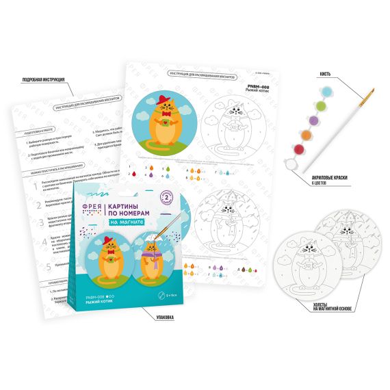 Фрея Набор для раскрашивания по номерам на магните PNBM-008 9х9см Рыжий котик