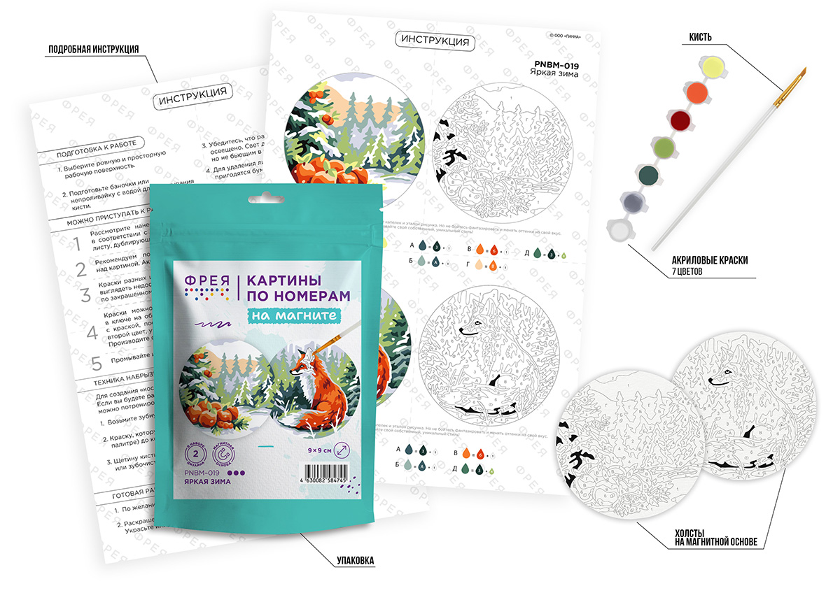 Фрея Набор для раскрашивания по номерам на магните PNBM-019 9х9см Яркая зима