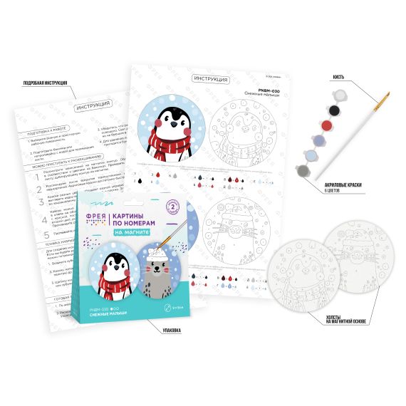 Фрея Набор для раскрашивания по номерам на магните PNBM-030 9х9см Снежные малыши