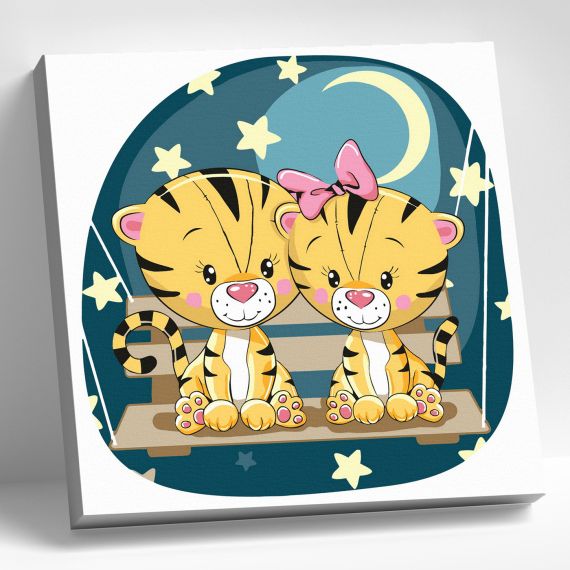 Molly Картина по номерам 20х20см Тигрята на качелях