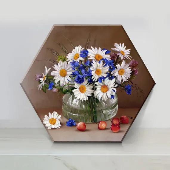 Molly Картина по номерам Гексагон 37х32х1.8см Бузин Ромашки и васильки