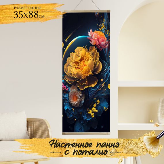 Molly Картина по номерам с поталью 35х88см Панно Желтый пион