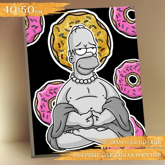 Картина по номерам с поталью 40х50 Гомер Будда – это набор для творчества, с помощью которого без специальных навыков и подготовки любой желающий может нарисовать красивую картину.