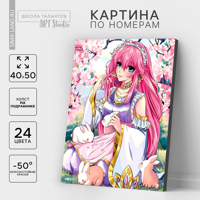 ШТ Картина по номерам на холсте с подрамником 40х50см Девушка с кроликами