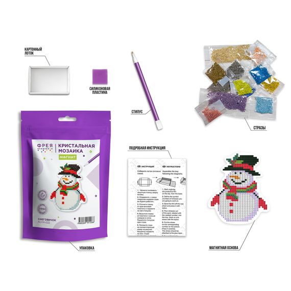 Фрея Алмазная мозаика ALVM-022 7.5х9.5см Магнит Снеговичок