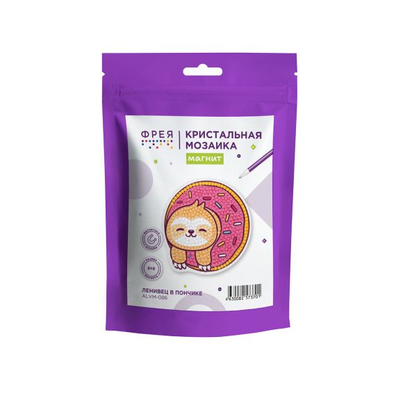 Фрея Алмазная мозаика ALVM-086 8х8см Магнит Ленивец в пончике