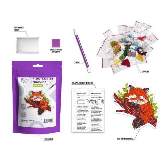 Набор для создания магнита в технике "Кристальная/алмазная мозаика".