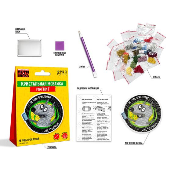 Набор, сертифицированный для детского творчества, для создания яркого магнита. Рекомендованный возраст: 7+.