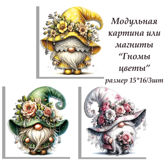 МХ Набор Папертоль 15х16см Гномы цветы 3шт