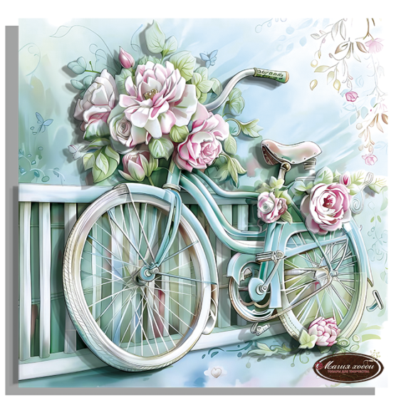 РТ150459 — папертоль «Лазурь. Велосипед» размер: 20*20 см. (готовая работа)