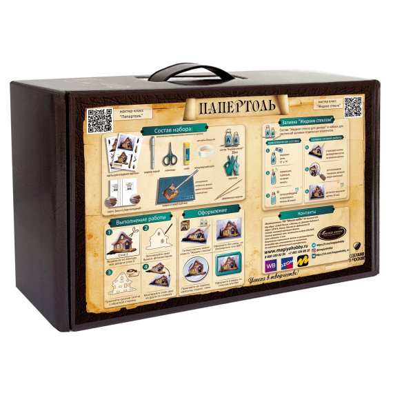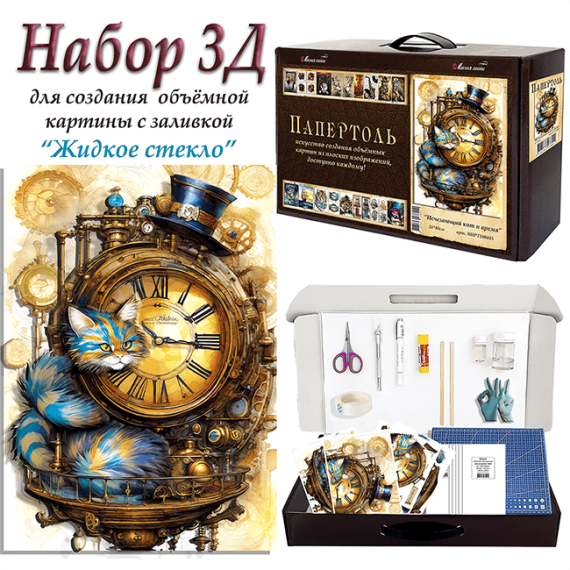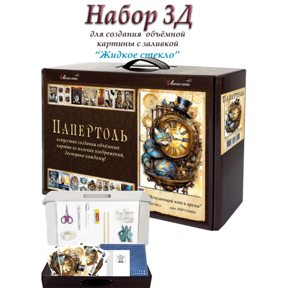 Папертоль – объемные картины из бумаги, техника ручного вырезания и создания объемных, 3D трехмерных изображений из бумаги. Простая в исполнении, но очень необычная техника. Карты содержат разобранное “по слоям” изображение картины, выполненное на качественной плотной бумаге. Нужно вырезать все элементы и склеить их при помощи двустороннего объемного скотча. Свою картину вы можете дополнить, защитить и сделать более долговечной с помощью полимерного состава «Жидкое стекло для декора» входящим в набор.