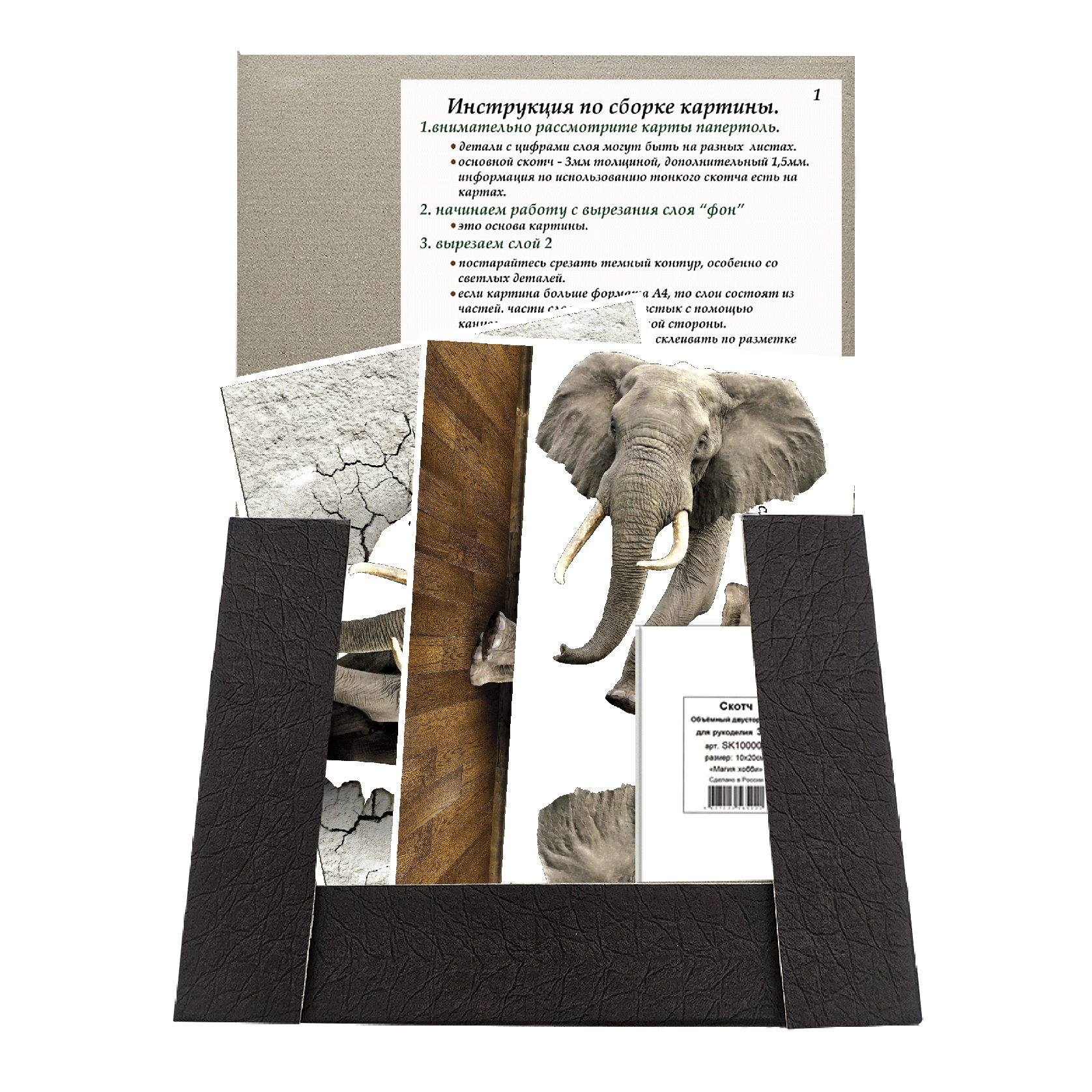 В набор входит: – карта для изготовления картины – двусторонний скотч 1,6мм.,3мм. – нужен для склеивания слоев – инструкция
