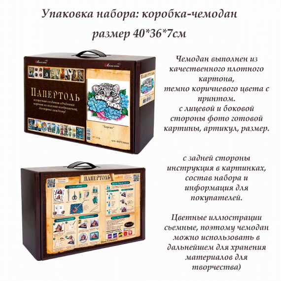 - Набор карт для создания картины (разобранное “по слоям” изображение), выполненное на качественной плотной бумаге;