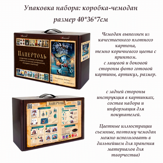 - Набор карт для создания картины (разобранное “по слоям” изображение), выполненное на качественной плотной бумаге;