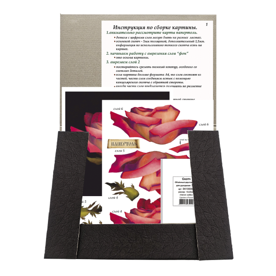 Папертоль – объемные картины из бумаги, техника ручного вырезания и создания объемных, трехмерных 3D изображений из бумаги. Простая в исполнении, но очень необычная техника. Карты содержат разобранное “по слоям” изображение картины, выполненное на качественной плотной бумаге. Нужно вырезать все элементы и склеить их при помощи двустороннего объемного скотча.