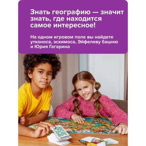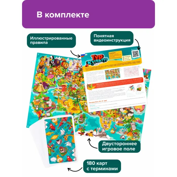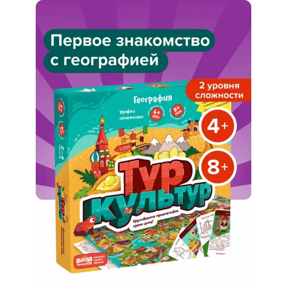 Кругосветное путешествие у вас дома! Игра "Тур культур" помогает изучать географию, глядя на нее с неожиданной стороны. С ней дети весело познают нашу планету и увлеченно соревнуются в знании стран, материков и океанов. Географические объекты, культурные явления, великие деятели, удивительные растения и непохожие друг на друга животные всего мира - все они уже ждут, когда ваш ребенок откроет их для себя!