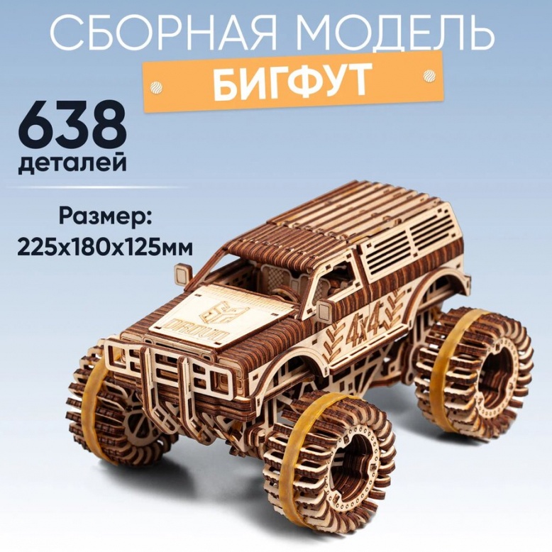 Деревянный конструктор Джип БигФут 4x4 станет отличным подарком для детей и взрослых, любителей больших автомобилей и внедорожников на полном приводе. Такой конструктор подойдет не только для мальчиков, но и для настоящих мужчин.