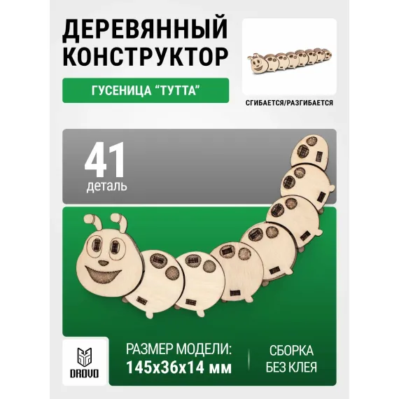 Drovo Конструктор деревянный 3D пазл Гусеница Тутта