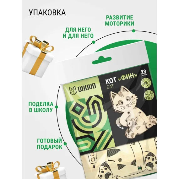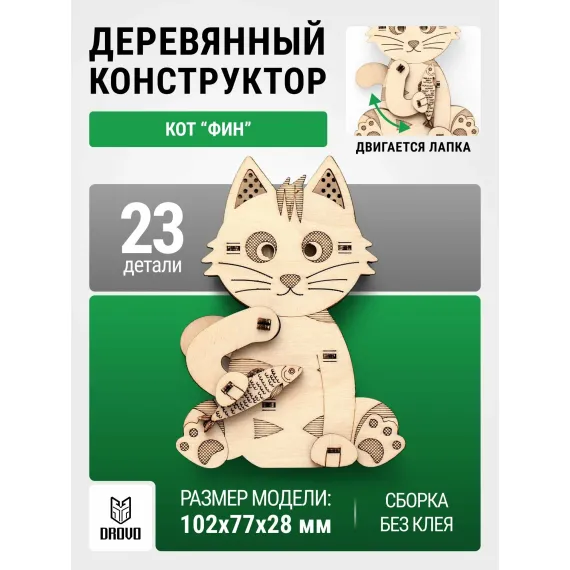 Drovo Конструктор деревянный 3D пазл Кот Фин