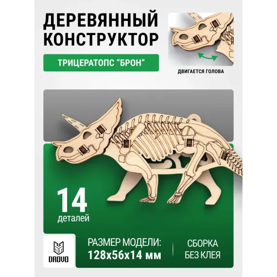 Drovo Конструктор деревянный 3D пазл Трицератопс БРОН