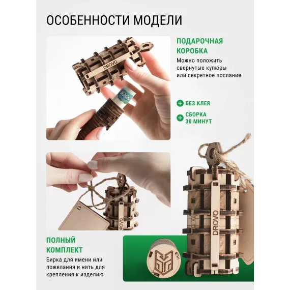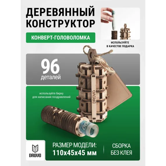 Drovo Конструктор деревянный Головоломка Конверт для денег