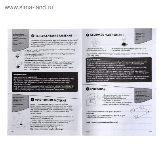 Набор для опытов «Наука о растениях» позволит провести 16 увлекательных опытов. В результате ребёнок узнает много интересного о ботаническом мире, а также научится выращивать, ухаживать и пересаживать любимые растения.