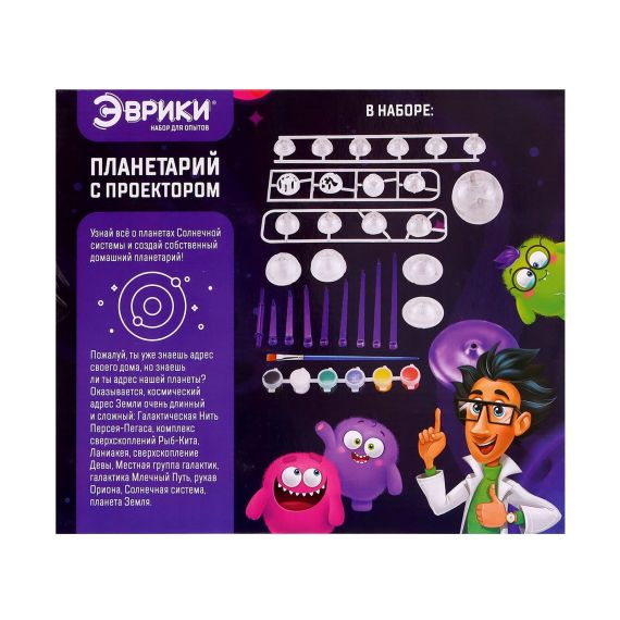 Набор для опытов «Эврики» отправит юного исследователя в далёкое путешествие в космос! Ребёнок соберёт планетарий и познакомится с Солнечной системой.