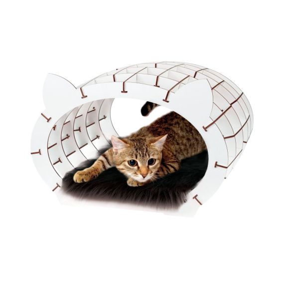 Ewa Домик для домашних животных, лежанка с мехом Кошкин дом белый каркас-черный мех