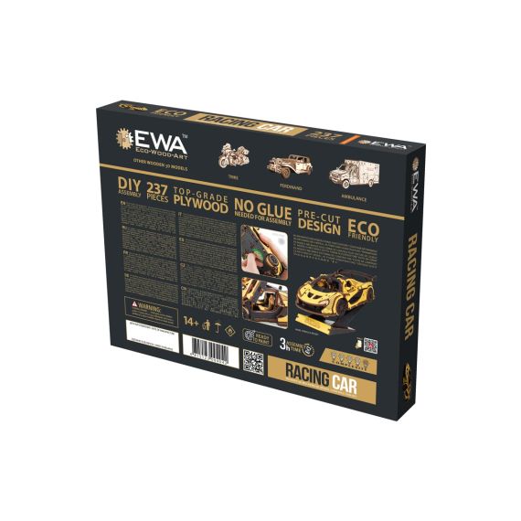 Ewa Модель сборная из дерева Гоночный автомобиль желтый