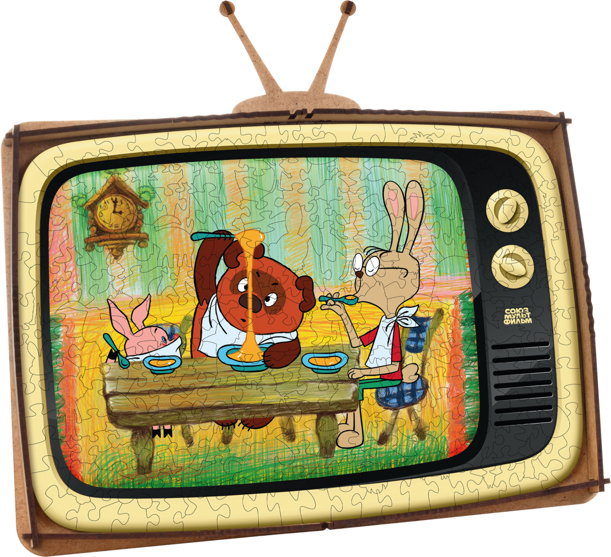 Деревянные фигурные пазлы с любимым советским мультфильмом станут отличным подарком для детей. Ведь каждый набор серии представляет собой картинку в «телевизоре», которая состоит из множества уникальных деталей – от геометрических фигур до животных и персонажей.