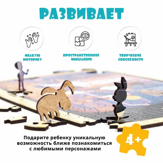 Деревянный пазл СоюзМультФильм превратит сборку головоломки в захватывающее приключение! Устройте праздник для своего воображения и отправляйтесь в удивительный мир, созданный знаменитой мультипликационной студией. Отправьтесь на встречу с любимыми героями и персонажами, чьи приключения оставили свой след в сердцах всех поклонников мультфильмов.