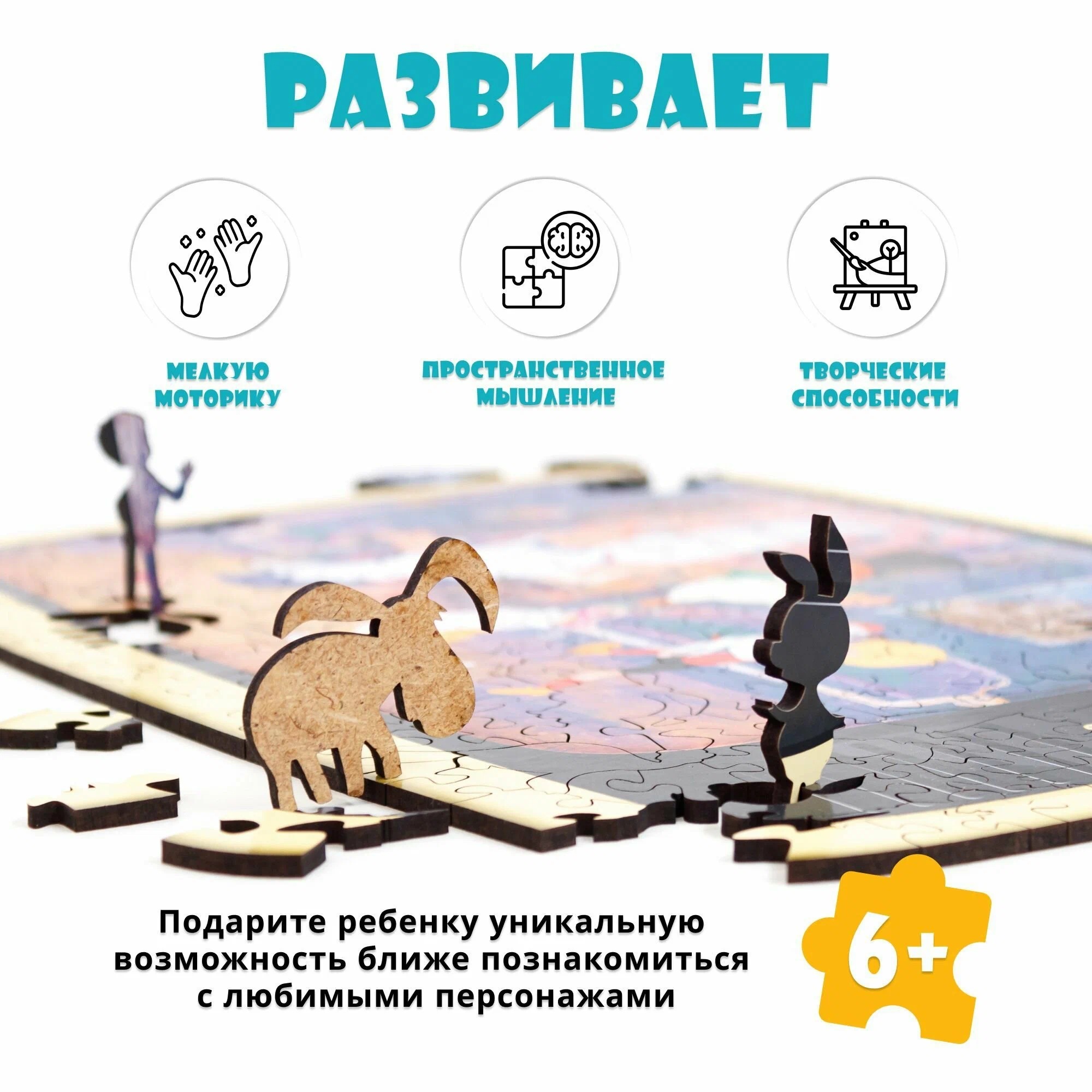 Деревянный пазл СоюзМультФильм превратит сборку головоломки в захватывающее приключение! Устройте праздник для своего воображения и отправляйтесь в удивительный мир, созданный знаменитой мультипликационной студией. Отправьтесь на встречу с любимыми героями и персонажами, чьи приключения оставили свой след в сердцах всех поклонников мультфильмов.