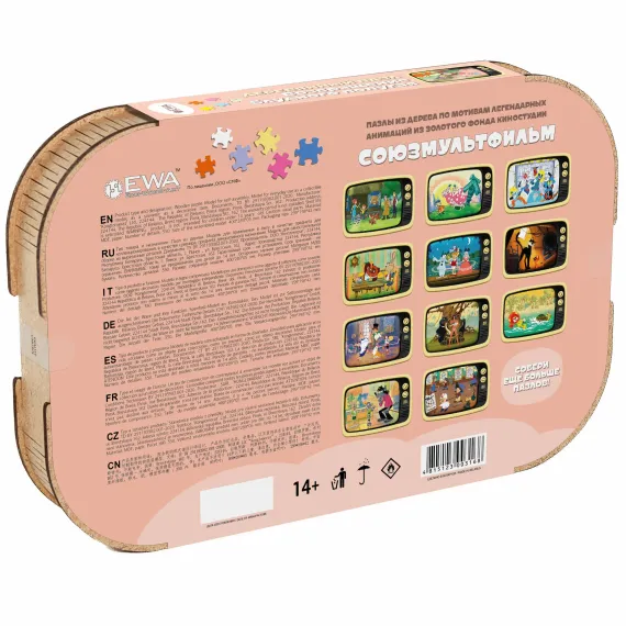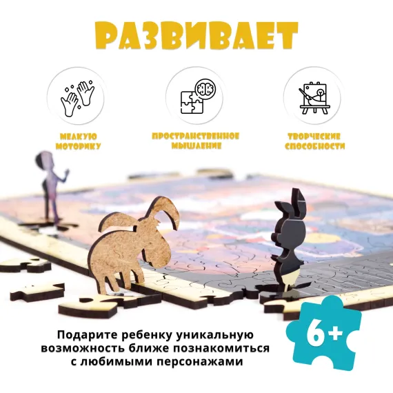 Деревянный пазл СоюзМультФильм превратит сборку головоломки в захватывающее приключение! Устройте праздник для своего воображения и отправляйтесь в удивительный мир, созданный знаменитой мультипликационной студией. Отправьтесь на встречу с любимыми героями и персонажами, чьи приключения оставили свой след в сердцах всех поклонников мультфильмов. Этот деревянный пазл подарит вам уникальную возможность ближе познакомиться с любимыми персонажами, а также развить пространственное мышление и творческие способности. Соберите этот пазл и окунитесь в волшебный мир СоюзМультФильм! Деревянный пазл станет прекрасным подарком для всех любителей мультфильмов Союзмультфильма и для тех, кто хочет сохранить и передать своим детям частичку своего детства. Размер модели в собранном виде: 400*286*4 мм. Размер упаковки: 300*200*42 мм. Количество деталей: 320. Вес упаковки: 950 грамм. Сборка без клея.